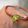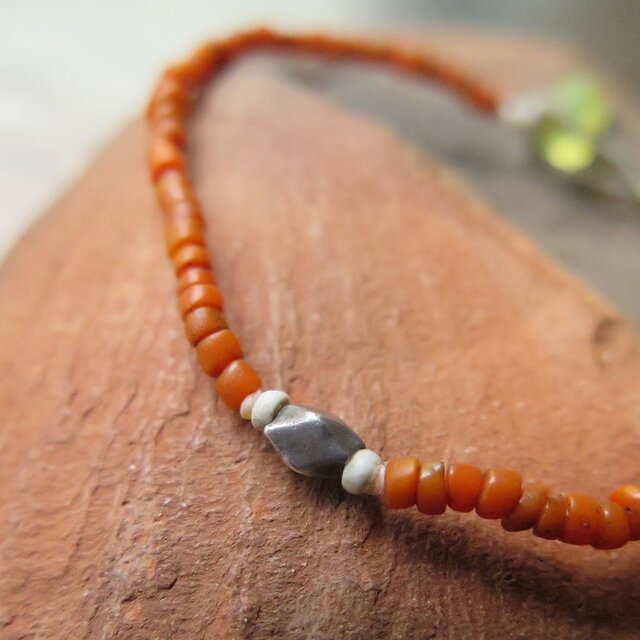 アンティーク チンシルバー + ウランガラス & インドシードビーズ 橙 ブレスレット 百世 momotose(東)