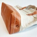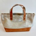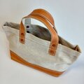 縦糸が麻、横糸が綿の麻帆布生地に持ち手片側と底に牛革を使用。