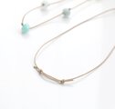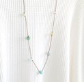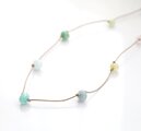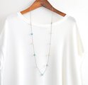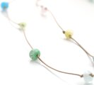 今まで作りためてきた小さな雫型のガラスビーズたちを、コットンコードで繋ぎ合わせて制作したロングネックレスです。