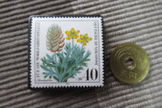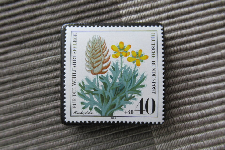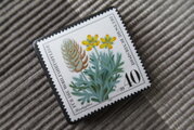 切手の中のお花を見て春の到来を待っているところです。いつも素敵なブローチをありがとうございます。