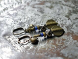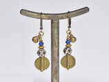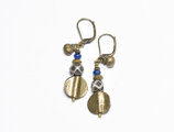 アフリカンブラスとトゥアレグビーズ、ブルービーズ、民族鈴を繋いだピアスです。