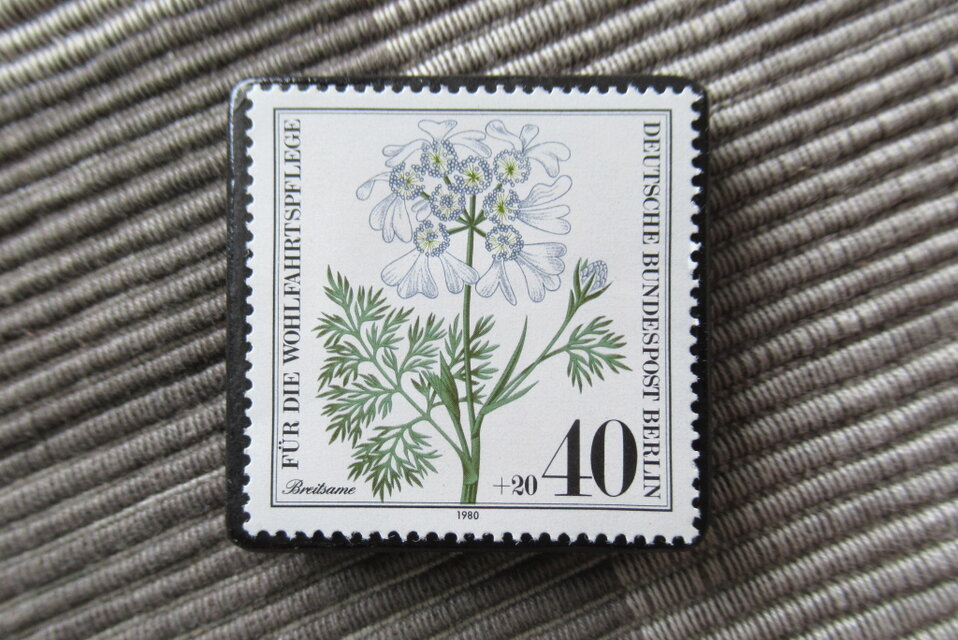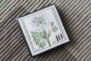 切手の中のお花を見て春の到来を待っているところです。いつも素敵なブローチをありがとうございます。