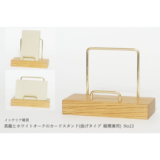 真鍮とホワイトオークのカードスタンド(曲げタイプ 縦横兼用) No13