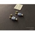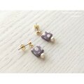 ドットスクエアのプチピアス(グレイッシュラベンダー+パール)