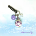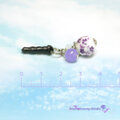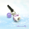 白地にパープルの花模様が描かれたセラミックビーズを主役にした、イヤホンジャックです。