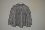 襟はフリル、袖山にギャザー、丸みのある袖口