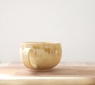 黄色の釉薬の上からアクセントとして飴色の釉薬をかけることにより、香ばしく美味しそうな色彩を描き出されました。