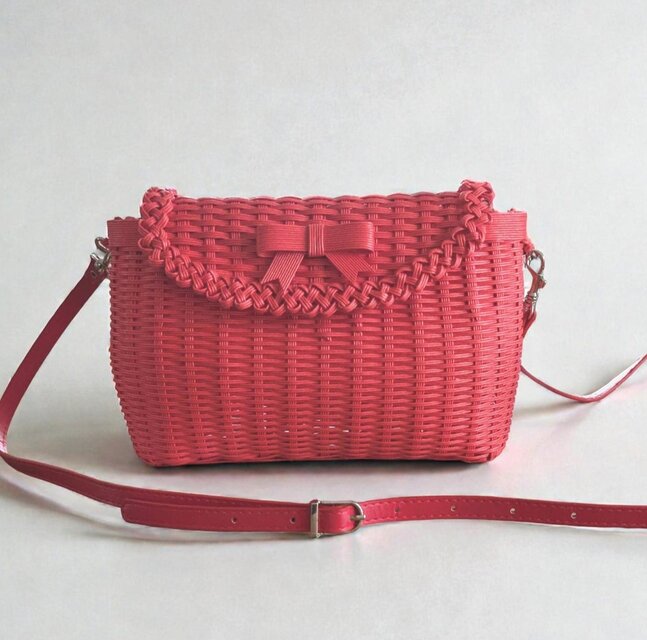 クラフトバンドで編んだ赤のショルダーバッグです。