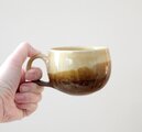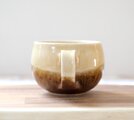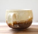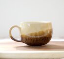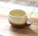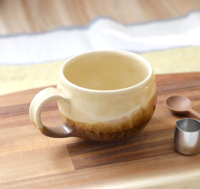 ころんとした丸い形が可愛らしいマグカップ。渋くも香ばしく、美味しそうな色合いです。