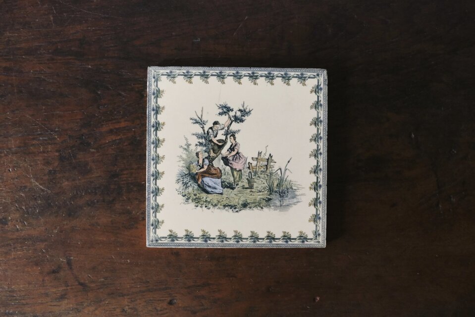 Creil&Montereau 手彩色 タイル 20.2×20.2cm フランス アンティーク 0502388