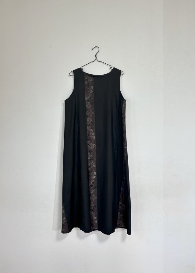 アンティーク着物、葉模様泥大島紬のワンピースです。