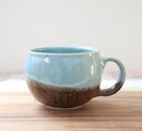 ニュアンスブルーと焦茶のほっこりかけ分けマグカップ