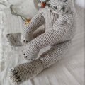 毛糸(ウール75・ナイロン25/トルコ産)、ウール生地、羊毛、ポリ綿・寒水(重し/大理石の砂)、木材・針金(耳・頭部接続)、刺繍糸などなど