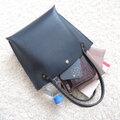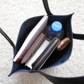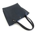 ◎落ち着いたダークネイビーのレザーにブラックのロングハンドルが映えるシックな雰囲気のミニトートです(^^