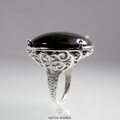 ベルベット オブシディアンを唐草と透かし模様の台座にセットしたリング。