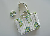 最後の1点!キルティングトートバッグ ハンドブロックプリント シュシュ付き♪gentiane(ジェンシャン)インド綿