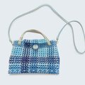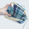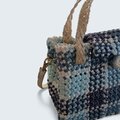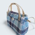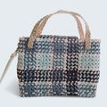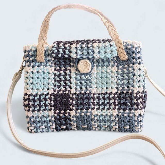 4色のブルーグラデーションが鮮やかな、チェック柄のクラフトバンド製バッグです。