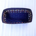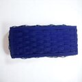 ロイヤルブルーの透かし編みクラフトバンド製カゴ・小物入れ