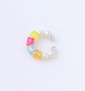 キューブ型キャンディーカラービーズにアイボリーカラーのカットパールビーズをあしらい、ポップで大人可愛い、軽くて着け心地の良いイヤーカフに仕上げました