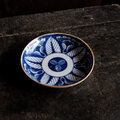花とリーフ◆時代物 花文印判中皿 骨董・antiques 古道具 丁寧な暮らしに。明治~大正期