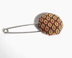 こっくりとした色合いの糸で刺したこぎん刺しを、ストールピンに仕立てました。