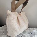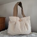 小さなドットを織りだしたアイボリーのインポートジャガード生地のタックトートバッグです。