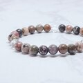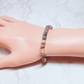 こちらの天然石を組み合わせ、温かみを感じる落ち着いた印象のブレスレットに仕上げました。