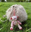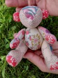 くまのチャーム・ピンク〈インド綿 ブロックプリント パッチワーク チャーム ぬいぐるみ キーホルダー〉