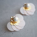 これまでの 倍以上に大きくなったこちらは、スパンコールが花びらのようでもあり、ショートヘアやアップのヘアスタイルにはとてもよく映えるエレガントで上品なピアス/イヤリングです。