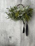 サイズ約20×35㎝ユーカリのドライフラワーで仕上げました。ツルも自然体に見えるようナチュラルに曲げました。ルナリアもキラリと美しいです。ユーカリはドライフラワーですので時間経過によりいずれはゆっくりと退色していきますが、飾る場所によって色もちは異なります。なるべく光や日差しが当たらない涼しい屋内の場所ですと、いい状態を保ちやすいです。お花が過ごしやすい場所に飾ってあげるのもいいのですが、お客様が1番飾りたい場所で飾っていただくのもいいかもしれません。