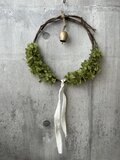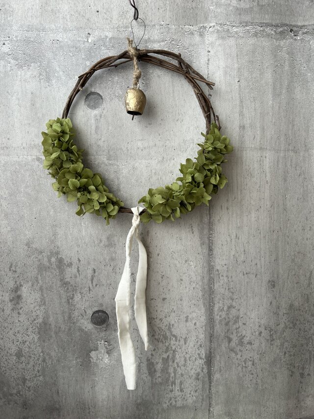 サイズ約24×21㎝長くお楽しみ頂けるプリザーブドフラワーで仕上げました。シンプルだからこそ気になる存在に。ベルを使ってオリジナル感を出しました。時間経過によりいずれはゆっくりと退色していきますが、飾る場所によって色もちは異なります。なるべく光や日差しが当たらない涼しい屋内の場所ですと、いい状態を保ちやすいです。お花が過ごしやすい場所に飾ってあげるのもいいのですが、お客様が1番飾りたい場所で飾っていただくのもいいかもしれません。