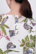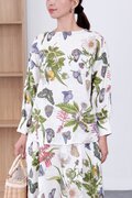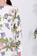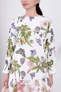 ★草花や蝶などが描かれたボタニカルプリントで、装いに華やかさとナチュラルな雰囲気をプラス。