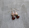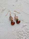 フラワーシェイプの淡水パールと合わせて秋色ピアスを作成しました。もちろん、極小天然石付きです!左右同じというのも退屈かと違う石をプラス、オレンジはヘソナイトガーネットと濃い緑がクロムダイオプサイドです。