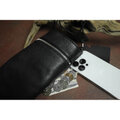 スマートフォンとお財布要素を備えた本革製ショルダーポーチです。