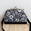 リバティ 長財布も入る大きめ 花柄コーデュロイのがま口ショルダーバッグ 25cm口金 エイブリ グレー 385