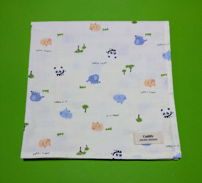 PURE*Wガーゼハンカチ*アニマル イエロー Cuddly 40*40
