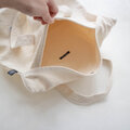 ミリタリーのヘルメットバッグに着想を得たバッグです。持ち手はジーンズ用のリベットで補強。ウォッシャブルの丈夫な手提げカバンで、ペットボトルは立てたまま入り、A4サイズもピッタリ入る使い勝手のいい形です。