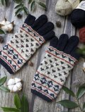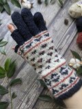 冬の休日に着けて、のんびり街歩きしたいようなラトビア模様の5本指手袋です。