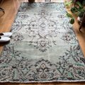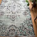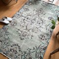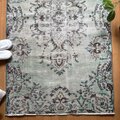 107×194淡いエメラルドグリーン×ブラウン シャビー トルコヴィンテージラグ