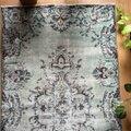107×194cm、ほどよいサイズ感で扱いやすいトルコヴィンテージラグ。淡いエメラルドグリーンを基調にしたメダリオン柄が、空間にやわらかな彩りを添えてくれる一枚です。擦れたようなシャビーな質感は、長い時間を経てきた証。新品には出せない、落ち着いたムードと奥行きを感じさせます。