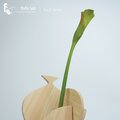 組み上がった花瓶はまるで小さな彫刻作品のよう。6枚の木片が空間の中で交差し、見る角度によって異なる立体的な表情を生み出します。底部は軽く手で回すことができ、花と花器が織りなす形の変化を360度から楽しむことができます。