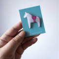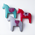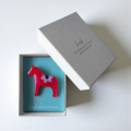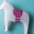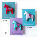 スウェーデン・ダーラナ地方発祥の木彫りの馬(ダーラヘスト)をデザインしたブローチです。