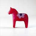 【幸せを運ぶ馬】とも言われ、その起源は18世紀初めのダーラナ地方の子供の玩具として作られた物でその体にはクルビッツフラワー(Kurbits)というのは架空の植物のデザインが施されています。