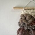 ベーシックなベージュに、様々なブラウンを組み合せ、落ち着いたお色の中にも可愛らしさと秋の深まりを感じさせるタペストリーに仕上げました。