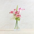 優美なピンクカラーとオーキッド(蘭)を、一輪挿しにのびやかに挿しました。