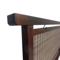 中部は天然木シナ材を使用しヒゴ状に加工後オイルステイン、ダークブラウンに着色してスダレ状に編んだ木簾です。