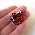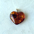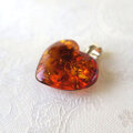 ハート型にカットして磨いた、かわいいリトアニア産アンバー(琥珀)のSV925ペンダントヘッドです。