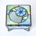 透明ガラスと青をアクセントにした小さなステンドグラスの箱です。