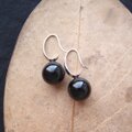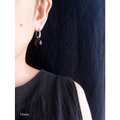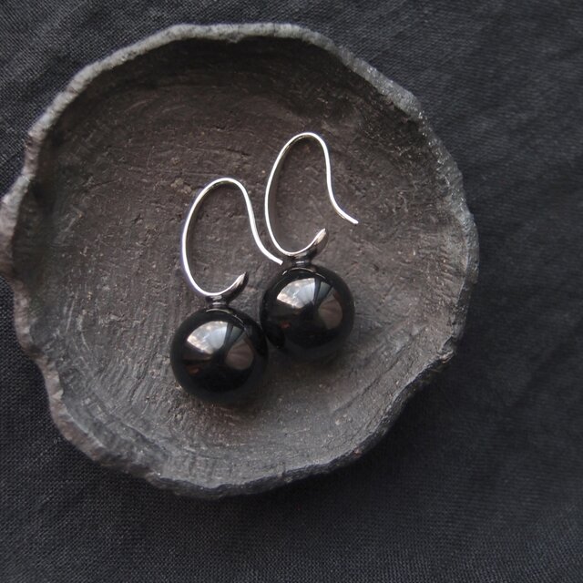 吸い込まれるような深い黒と、存在感のあるメタリックシルバーの曲線が耳元にシャープで知的な印象を添えるオニキスのフックピアス。