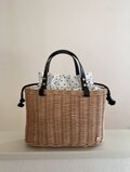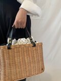 【1点在庫あり】手編みの籐かごバッグ/Megg Bag panier/取り外せるファー付き/白黒ドット/ かごバッグ